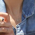 Jessica Alba wears a necklace with her daughter's initials while grabbing coffee.