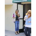Jessica Alba was in a good mood after getting a pick me up at Starbucks on Thursday.