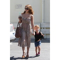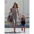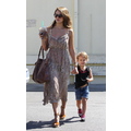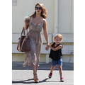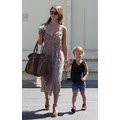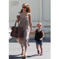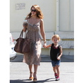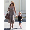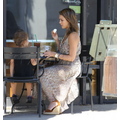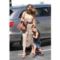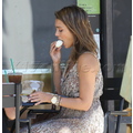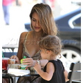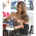 Jessica Alba eats a hard-boiled egg while eating lunch with daughter honor at Starbucks.
