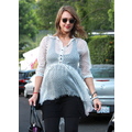 Jessica Alba sports fashionable maternity fashion.