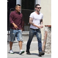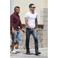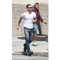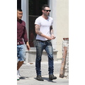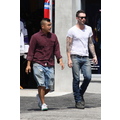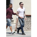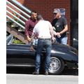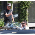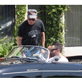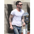 Adam Levine gets a thumbs-up from a fan as he sports around in his Porsche.