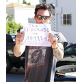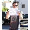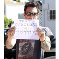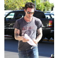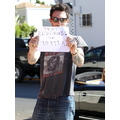 Adam Levine Holds Up Red Cross Sign