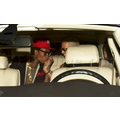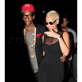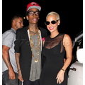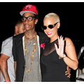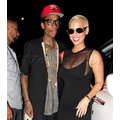 Amber Rose smiles as she arrives at her birthday party with boyfriend Wiz Khalifa.