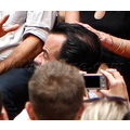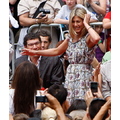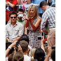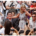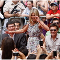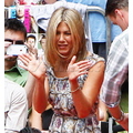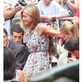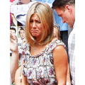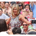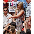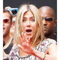 Jennifer Aniston waves to her fans at Hollywood ceremony.
