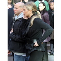 Jennifer Aniston looked confused and slightly frazzled when we snapped her on the set of Wanderlust in NYC today.