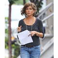 Jennifer Aniston wore specs and a sexy dress on the set of her new movie.
