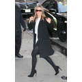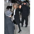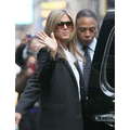 Jennifer Aniston flashed photographers a quick smile before her interview on Good Morning America.