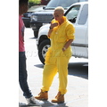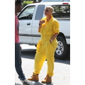 Amber Rose looks like a sanitation worker in her bright yellow jumpsuit