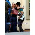 Ashlee Simpson channels the Guns N Roses frontman with a leopard print head scarf!