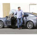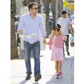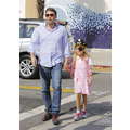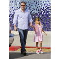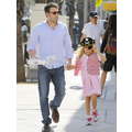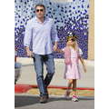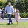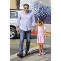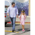 Ben Affleck with Violet who is dressed like a pirate picking up Krispy Kreme Doughnuts after school in Brentwood.
