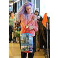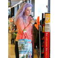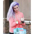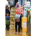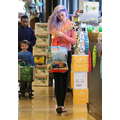 ireland Baldwin showed off her newly-dyed purple locks at the grocery store on Thursday.