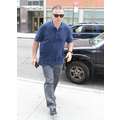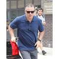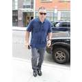 Alec Baldwin left his NYC apartment building just hours after being arrested for biking the wrong way on 5th Avenue.