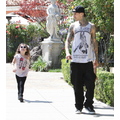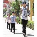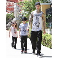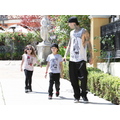 Travis Parker takes his kids, Landon and Alabama, on a stroll though Malibu on the 4th of July.