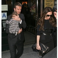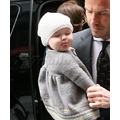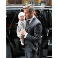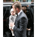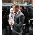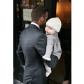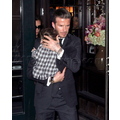 David Beckham and Victoria Beckham take baby Harper to Balthazar in New York City.