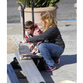Cruz, Brooklyn and Romeo Beckham played at the skate park in Culver City on Saturday. Cruz took a minor tumble, but after a few tears he hopped right back onto his board.