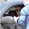 The soccer stud has a chat with his bodyguard at the Coffee Bean in Hollywood.