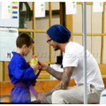 David Beckham and Cruz shared a precious moment at karate yesterday.