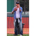 Becks and his boys tossed a football around at a local park this afternoon.