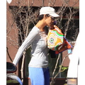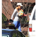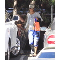 Halle Berry still sports her boot as she picks her daughter up from school.