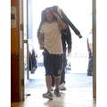 Justin Bieber covered up his fried blonde hair after lunch on Thursday.