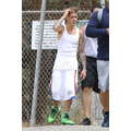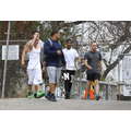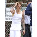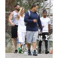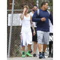 The singer worked out with his bodyguards.