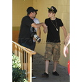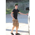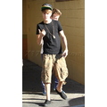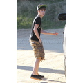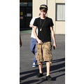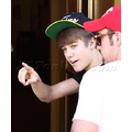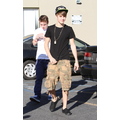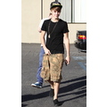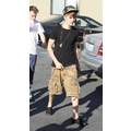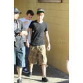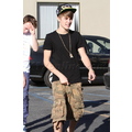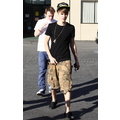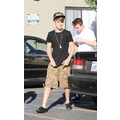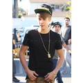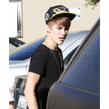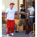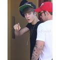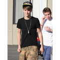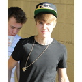 Justin Bieber grabs a bite to eat with his entourage at Shakey's Pizza in Sherman Oaks.