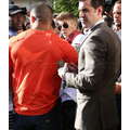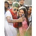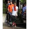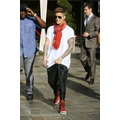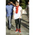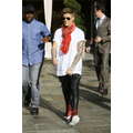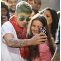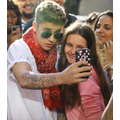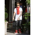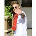 Justin Bieber was all smiles when he left the Apple store at the Grove in Los Angeles on Wednesday.
