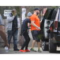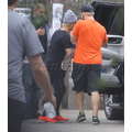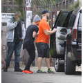 Justin Bieber covered up his new 'do after getting a haircut on Tuesday.