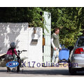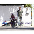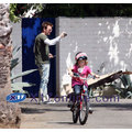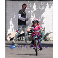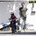 Ewan McGregor keeps an eye on two of his daughters as they take the training wheels off outside of his house.
