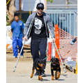 Despite being on crutches for a mysterious injury, the oh-so-hunky Brody Jenner managed to hobble alongside his new girlfriend and Rottweiler puppies on Tuesday.