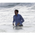 Orlando Bloom makes a splash on set in Malibu. We can't even begin to imagine how cold he was!