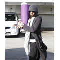 Russell Brand was snapped at yoga early this morning clutching a can of coconut juice.