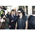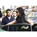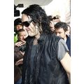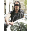 Russell Brand was snapped with a wet (or greasy?) head of hair as he arrived at his London hotel on Monday.
