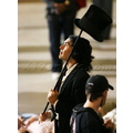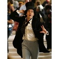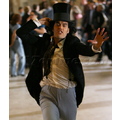 The British comedian rocked a top hat as he rushed around New York City.