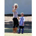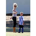 Britney Spears at Sean Preston's soccer game wearing a tank top and giving a wave.