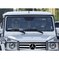 Britney Spears was snapped rolling up to Conway Studios in Hollywood in the passenger seat of her white Mercedes G-Wagen.