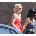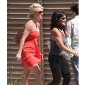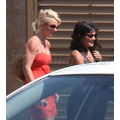 Britney Spears looked red hot when we caught her at the studio with her mom Lynne yesterday.