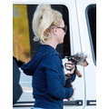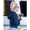 Britney Spears looks lean but way too casual in Beverly Hills with a hole in her spandex carrying a dog with her cigarettes as she enters The Beverly Hills Hotel.