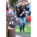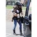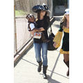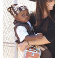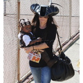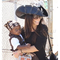 Sandra Bullock holds her baby son Louis close as they head to a pirate theme Halloween party dressed in matching costumes.