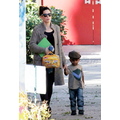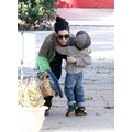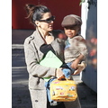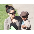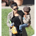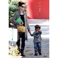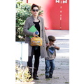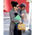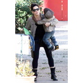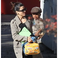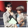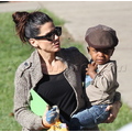 Sandra Bullock held on tight to her son Louis in LA on Tuesday.