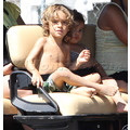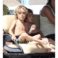 The pregnant model was snapped with Levi and Vida in Malibu on Tuesday.