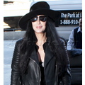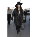 Cher catching a flight at LAX in leather.