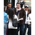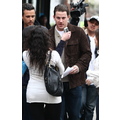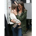 Katie brings Suri with her to the set of her film Son of No One while Tom stays behind in Beverly Hills.