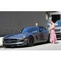 Kaley Cuoco leavs yoga in flowing dress and gets into her new Mercedes SLS that runs about $250,000 on Sept. 15, 2014.