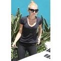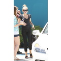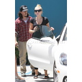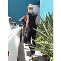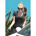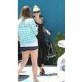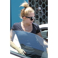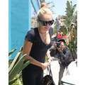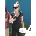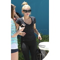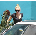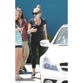 Miley Cyrus showed off her freshly dyed blonde locks on Monday at Pilates.