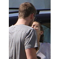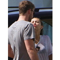 Miley Cyrus puckers up to boyfriend Liam Hemsworth.