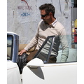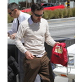 David Arquette carries a tote from the show he produces, Jake and the Inner Land Pirates.