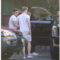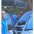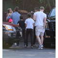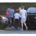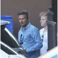 David Beckham takes Harper, Brooklyn and Romeo out to dinner in Beverly Hills on Wednesday.