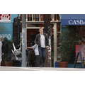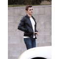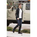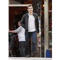 Dave Franco looking cool in leather jacket where he meets up with an unknown girl on Monday in Silverlake, Calif. We wonder if girlfriend Alison Brie minds the fact that he's bringing another girl flowers?