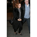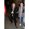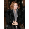 Demi Lovato smiles as she leaves her NYC hotel on Tuesday night.